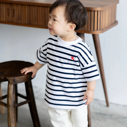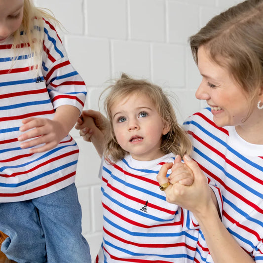 Matchande randig T-shirt 100% organisk bomull - förälder och barn