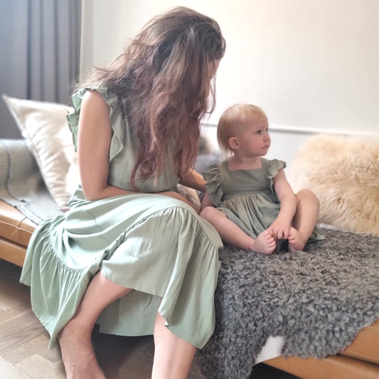 Ljusgrön sommarklänning - matchande för mamma och barn